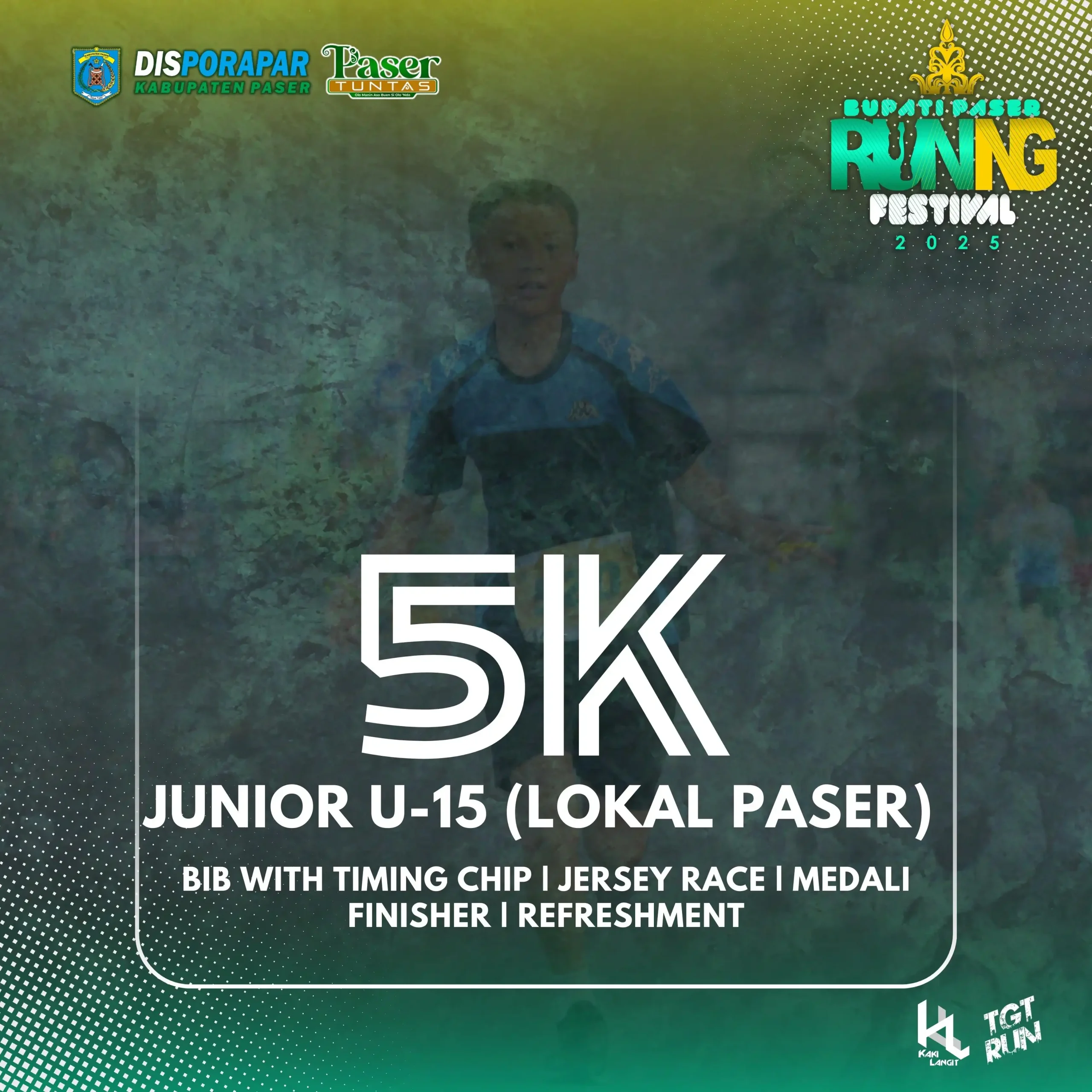 Peserta 5K Junior wajib berusia 12 – 15 tahun, warga Kabupaten Paser (memiliki KTP atau KK Paser). Peserta dengan usia <12 tahun wajib membawa surat ijin dari orang tua.